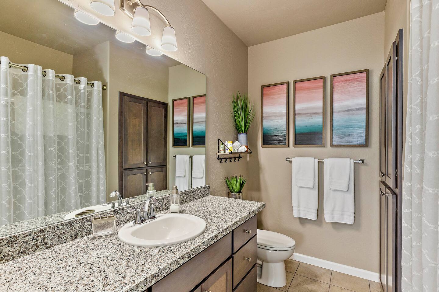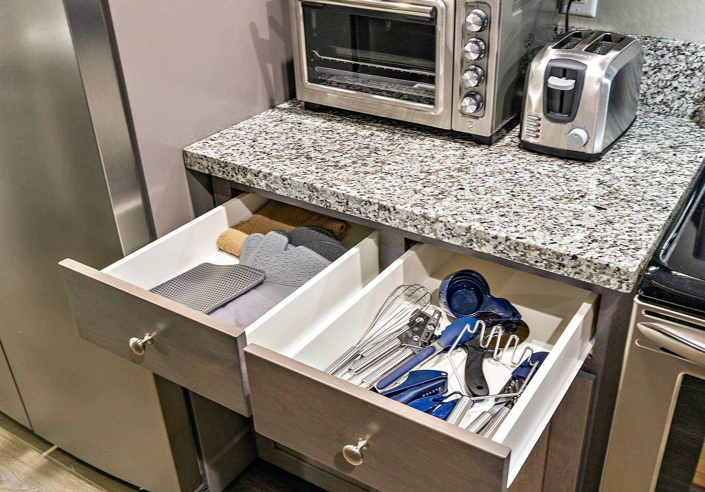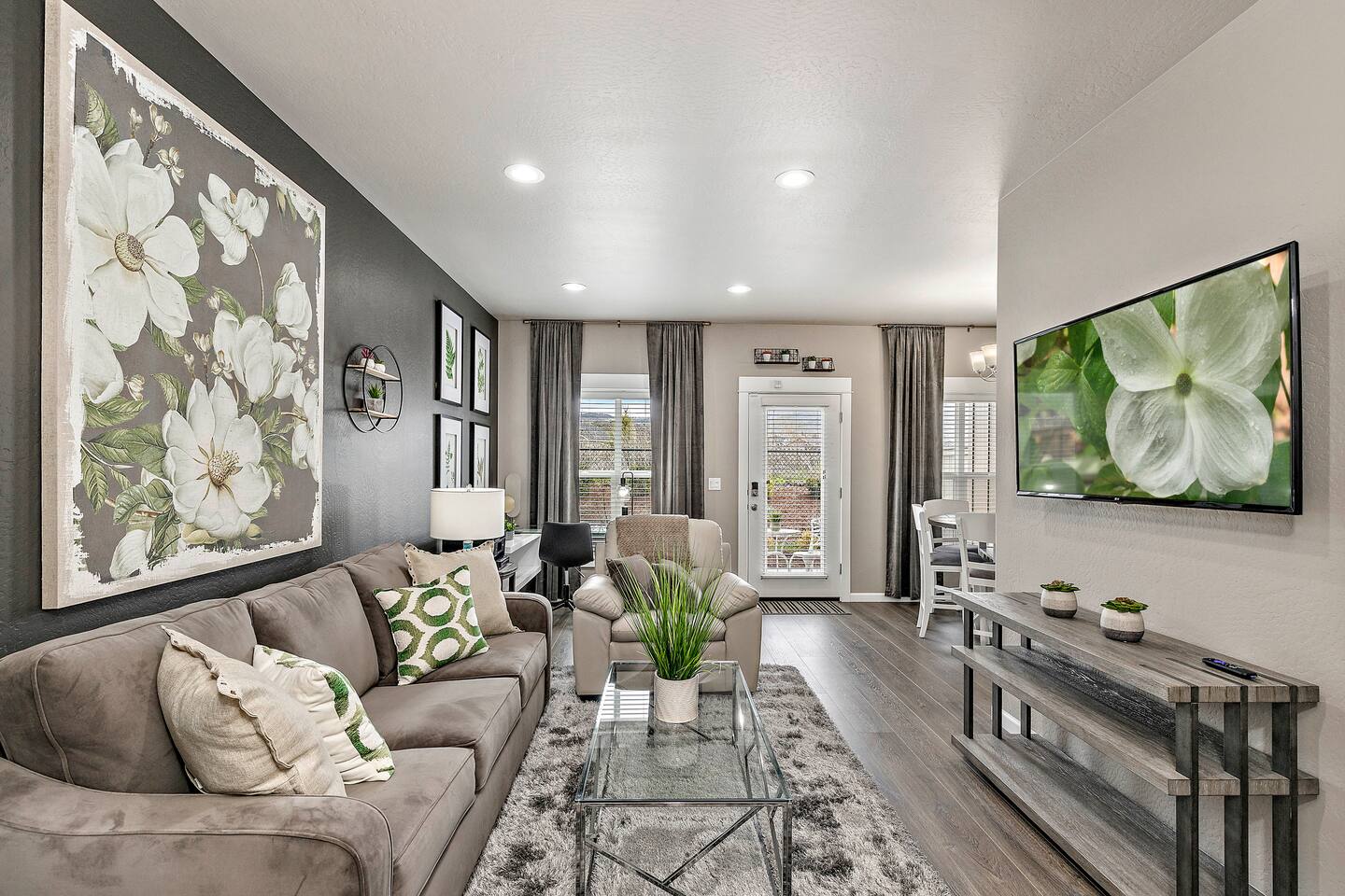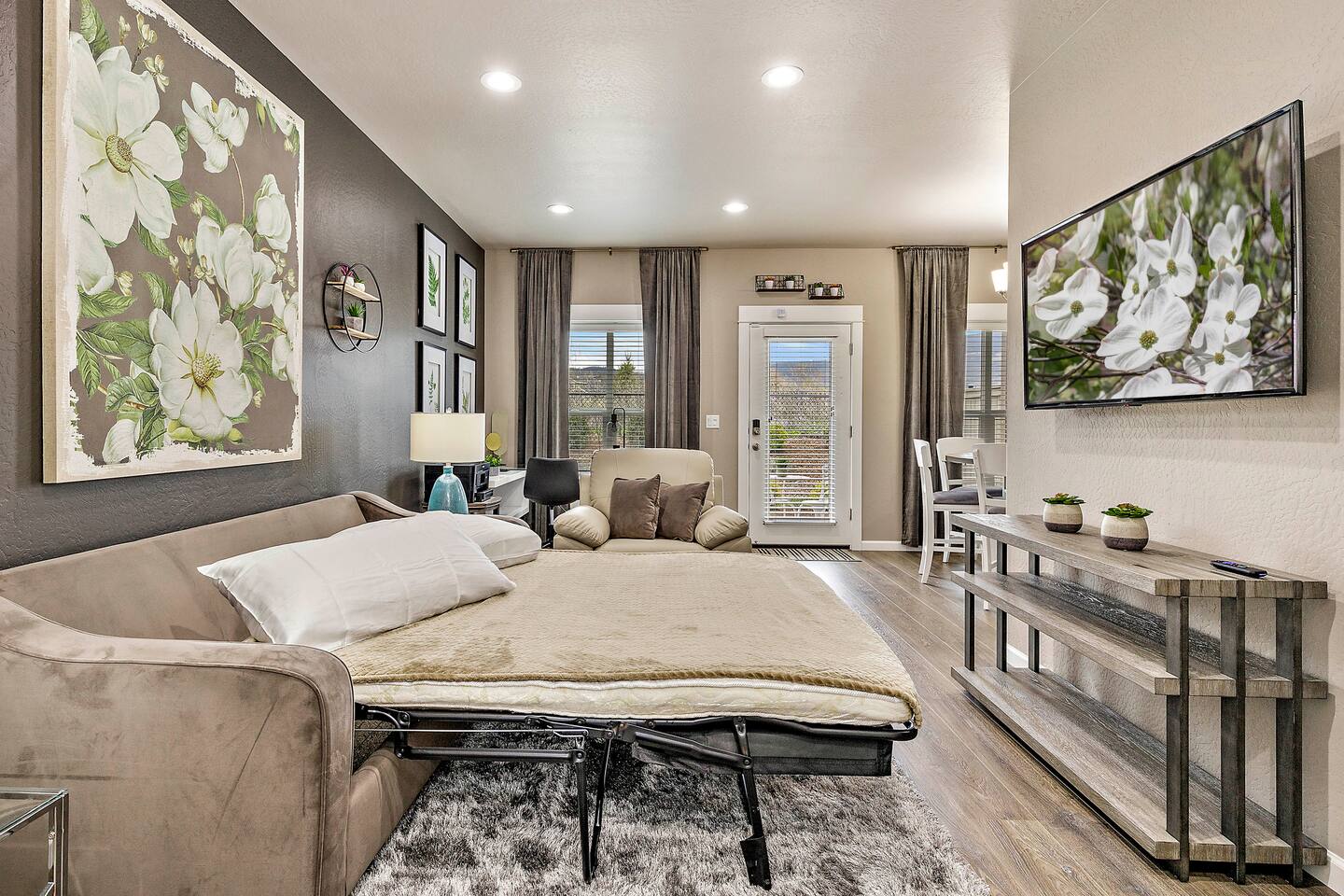 ★ Home Includes... ★ ➙ Professionally Cleaned (Covid-Friendly) Between Guest Bookings ➙ Fully-Equipped Kitchen (like, seriously; no short-cuts here!) ➙ Business Center w/ Multi-Port USB Charging Station and Color Printer ➙ Fast Internet (415 Mbps Download / 930 Mbps Upload) ➙ 2 California-King Beds, 1 Queen Sleeper Sofa ➙ 55" LG HD 4K ROKU-Controlled TV in Living Room ➙ 50" Vizio HD 4K ROKU-Controlled TV in Each Bedroom ➙ Air-Conditioning ➙ In-Unit, Full-Sized, Side-by-Side Washer & Dryer ➙ Tower Air Circulation/Ionizer & 2 Pedestal Fans (for added comfort) ➙ Full-Size Ironing Board and Iron ➙ Pack-N-Play, Stroller, and High-Chair ★ Kitchen Includes... ★ ➙ Instant Pot Rice/Pressure Cooker ➙ Instant Pot Blender ➙ Pots and Pans ➙ Counter-Top Broiler/Toaster Oven ➙ Spices and Spice Rack ➙ Cookware ➙ Dinnerware ➙ Glassware ➙ Bakeware ➙ Cooking and Eating Utensils ➙ Glass and Stainless Steel Mixing Bowl Sets ➙ Colander ➙ Keurig Coffee Maker and Pods ➙ French Press ➙ Chemex Pour-Over ★ Security Features Include... ★ ➙ No-Person, Contact-Free, Keyless Entry ➙ Security Surveillance at Front Entry, Rear Entry, and the Garage ➙ Guest-Controlled Arming/Disarming of Unit ➙ Indoor Security Motion Detection when Armed ➙ Noise-Level Monitoring ➙ Door-Open Detection (Front and Rear Entry)
