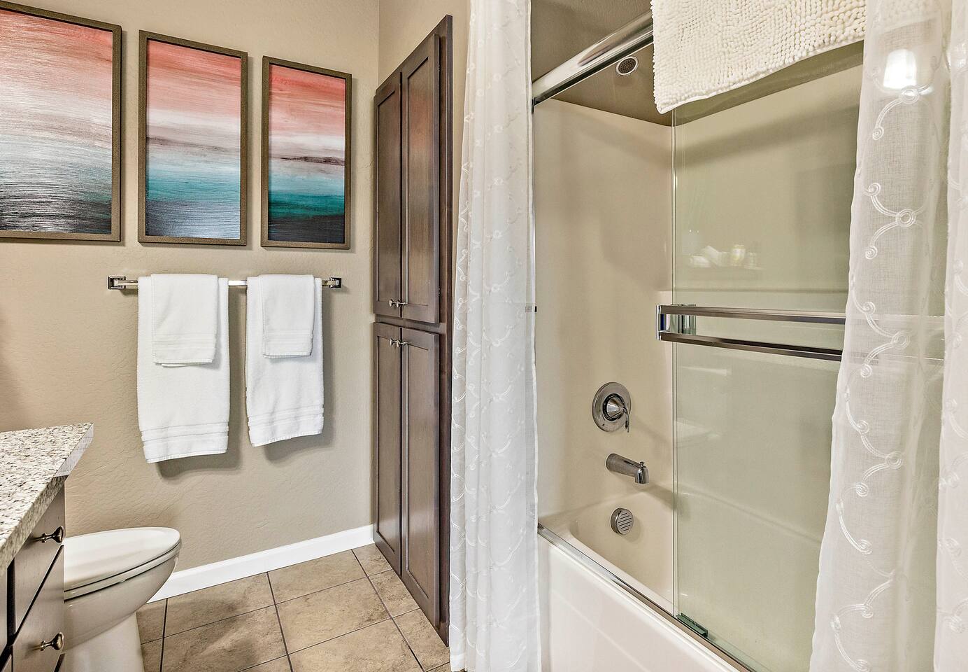 The entire home is yours to enjoy, including the private, partially-covered back patio and yard. ★ ★ Special Note ★ ★ This unit has an attached one-car garage that serves as storage and replenishment of supplies and linens for all the units that we operate on the property. There may be times when our cleaners and/or maintenance personnel access the garage from the exterior of the unit only. No access directly into the unit from the garage will occur. To minimize inconvenience or disruption to our Guests, we will make every attempt to do the following: 1). Access the garage during our normal checkout/check-in window of 11:00am and 4:00pm, and 2. Communicate in advance with Guests in this unit when access to the garage from outside is planned or necessary.