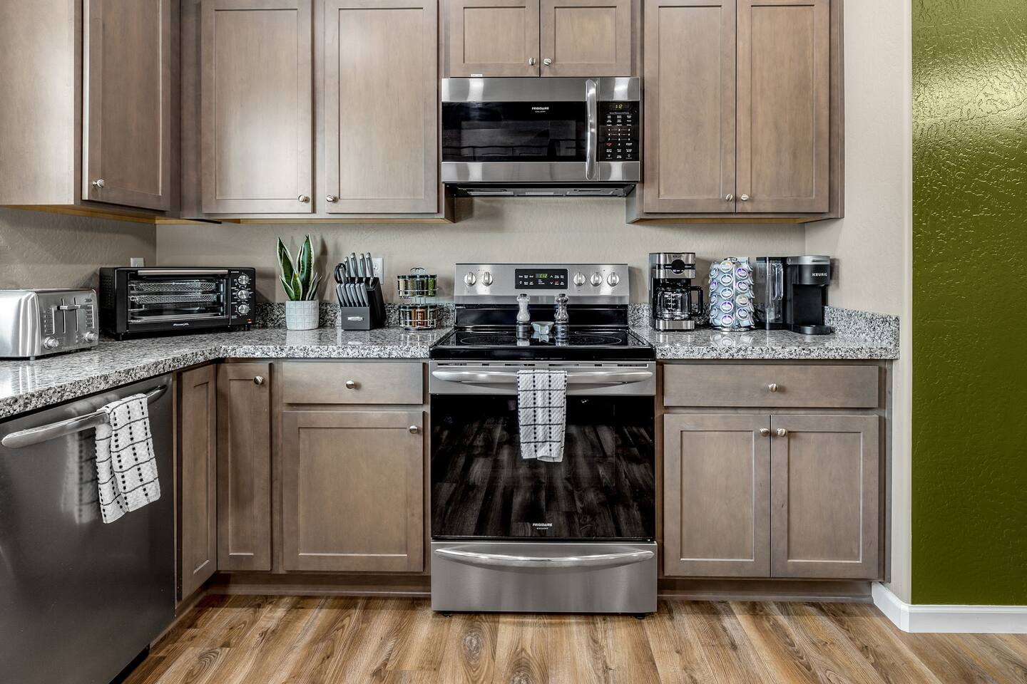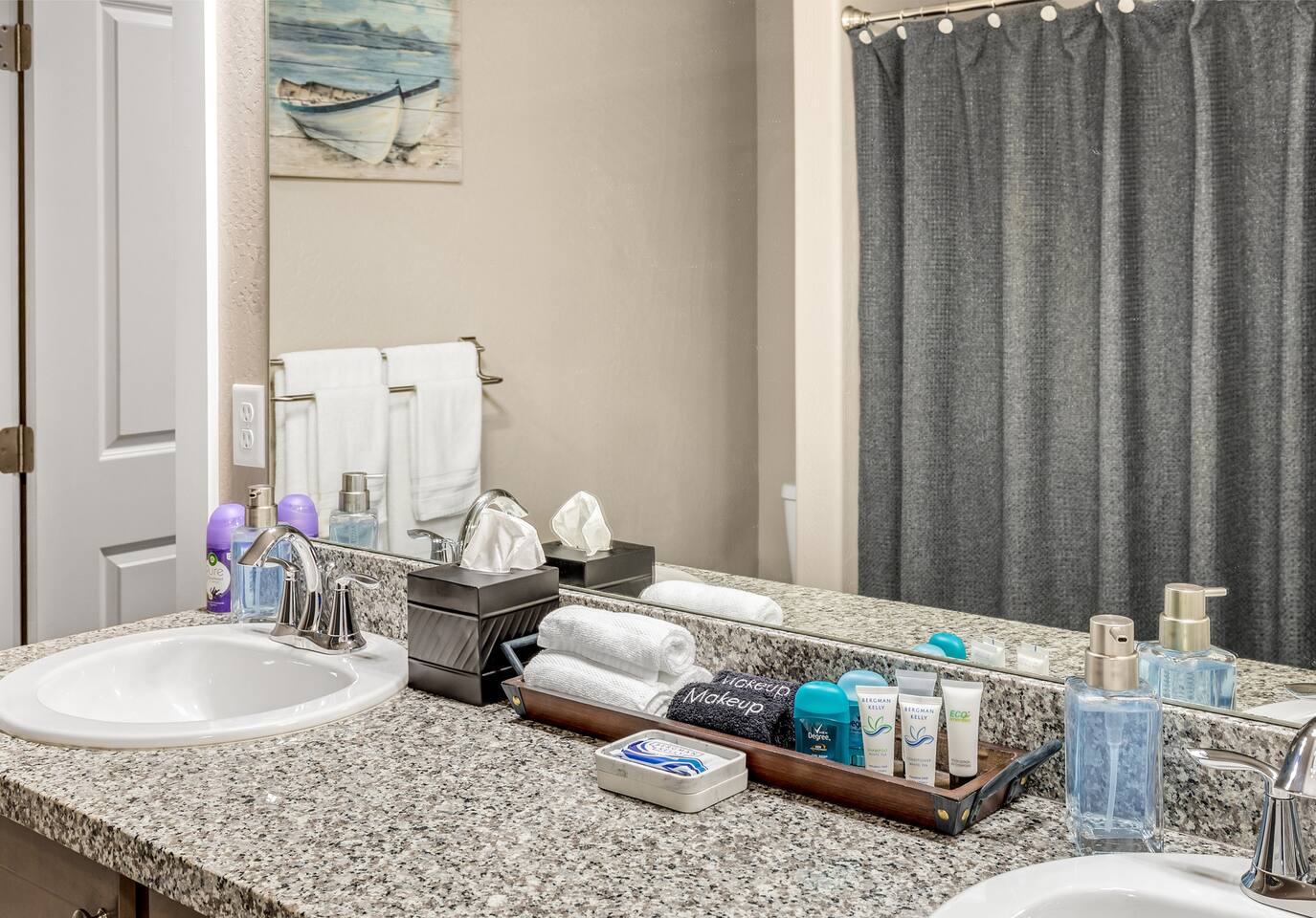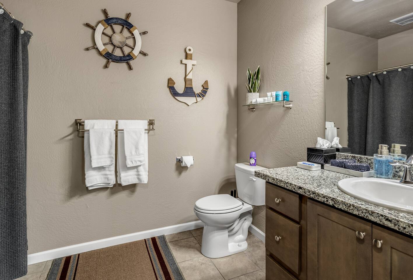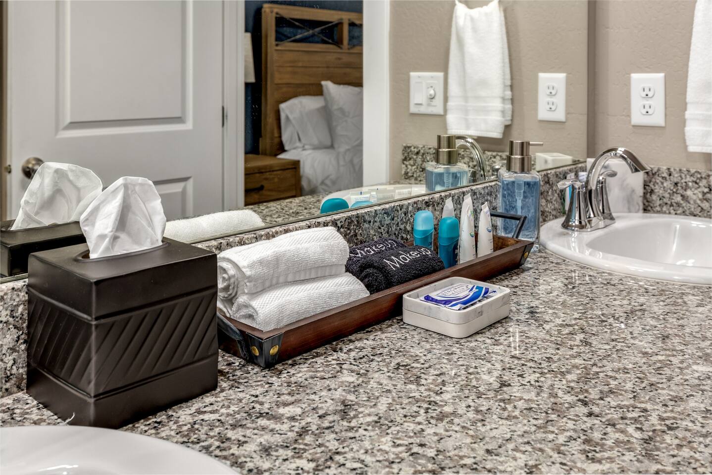 This home is equipped with a front door keypad deadbolt, doorbell camera, indoor motion detector, glass break sensor, smoke alarm, CO2 detector, and door sensors. The home security system is monitored 24/7 by Vivint Security. From time to time, our amenities and furnishings are replaced in order to keep up with our business's high standards. All replacements, while they may not match exactly the photos in the listing, are of at least the same type and quality, if not even better than presented in the listing's photos. ** Consumable Amenities ** As a compliment to your stay, we provide "Starter Kits" to get you going. Some of these consumable amenities include toothpaste, mouthwash, shampoo, conditioner, and body lotions. Please note that these and other consumables, including toilet paper and paper towels, are not replenishable during your stay as we do not have onsite staff to accommodate such requests.